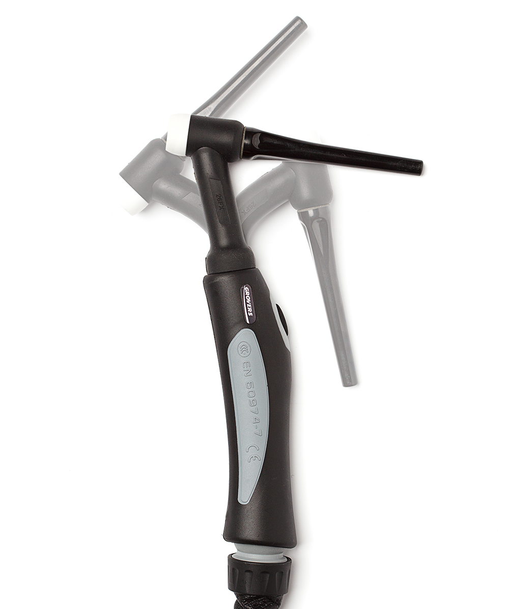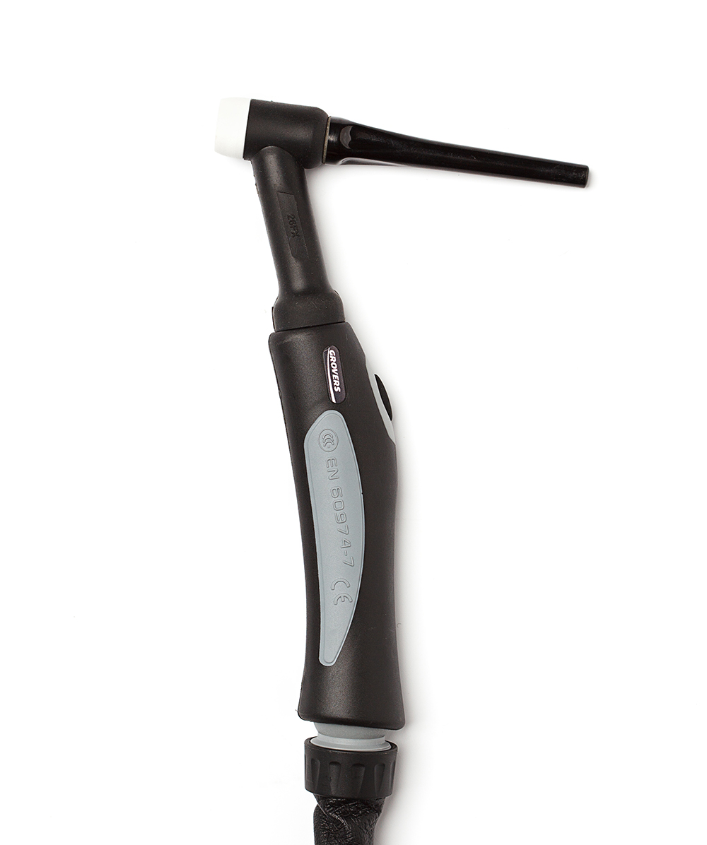 Сварочная горелка GROVERS SUREGRIP 26 FLEX c воздушным охлаждением предназначена для аргонодуговой сварки неплавящимся электродом в среде инертных газов. Подключение осуществляется через кабельную вставку 35-50 с выведенным шлангом для подачи газа. Подключение управления через разъем TYCO (адаптирован для аппаратов GROVERS).