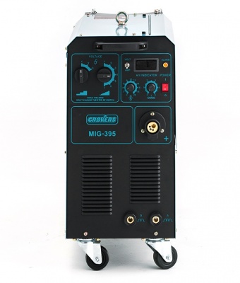 GROVERS MIG 395 мощный сварочный полуавтомат MIG/MAG сварки со ступенчатым переключением. Превосходные свойства сварочной дуги гарантируют минимальное разбрызгивание во время сварки в среде аргоновых смесей, а также при сварке в С02. Источник оснащен встроенной тележкой на колесах, имеет ручки для перемещения. GROVERS MIG 395 может осуществлять сварку проволокой диаметром от 0,8 мм до 1,2 мм (для сварки углеродистой и нержавеющей стали) на катушках D300 и D200