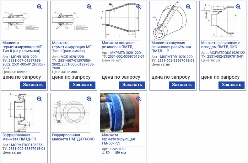 Герметизирующие манжеты ПМТД изготавливаются следующих типов ПМТД, ПМТД-П, ПМТД-Р, ПМТД-ОКС, ПМТД-ГП, ПМТД-ГП-ОКС и предназначены для герметизации межтрубного пространства между магистральным трубопроводом диаметром 57-1420 мм и защитным кожухом (футляром) диаметром 219-1720 мм (включительно) на переходах под автомобильными и железными дорогами, а также другими инженерными сооружениями во всех климатических зонах от -40С0 до +60С0.